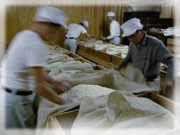 神戸の中堅蔵として、凍結酒等、様々な新しい試みをしてきた、福壽酒造は震災で蔵が半壊したのをきっかけに、蔵を新築、「神戸酒心館」として再スタートしました。 鉄筋の蔵と、きれいなゲストハウスを造り、観光客の方もたくさんいらっしゃいますが、一番変ったのはやはり酒造りです。 新築の蔵とはうらはらに、蒸米は昔ながらの釜と甑を使ったきちっとした蒸しで、全ての酒は伝統的な蓋こうじで造られています。大変手間のかかる仕事ですが、それゆえに、個性的で素晴らしい酒ができるのです。 |